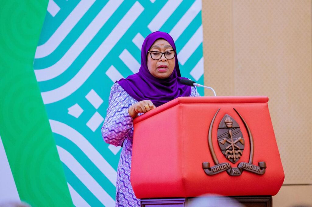 Dr. Samia Suluhu Hassan, President of the United Republic of Tanzania, delivering a speech at the Dividend Day event held on June 10, 2025 at the State House in Dar es Salaam. During the event, the President received TSh1.028 trillion in dividends and contributions from public institutions and companies in which the government holds minority shares.