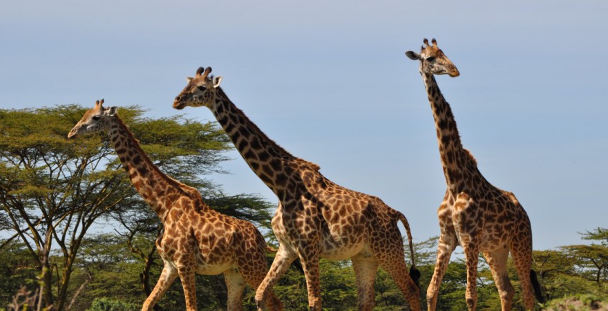 girrafes roam the park