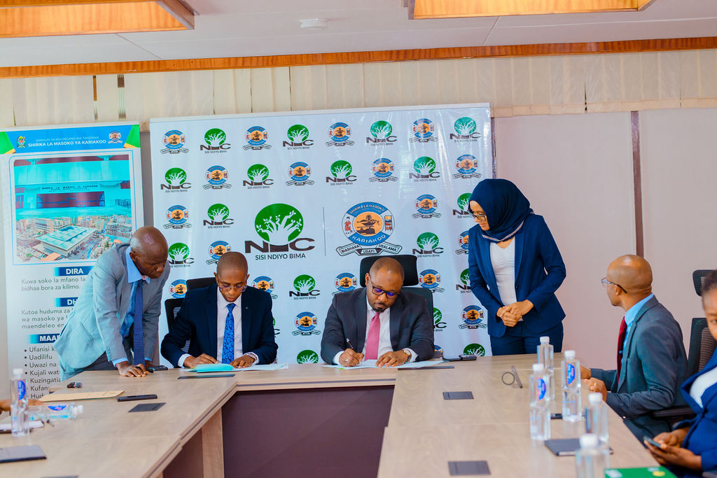 Kariakoo Market Corporation General Manager, Ashraph Abdulkarim (left), pictured with the Managing Director of the National Insurance Corporation (NIC), Mr. Kaimu Mkenyenge (right), during the signing ceremony of the memorandum of understanding for the provision of insurance services to the soon-to-be-opened new Kariakoo Market. The event took place in Dar es Salaam on July 30, 2025.Kariakoo Market Corporation General Manager, Ashraph Abdulkarim (left), and Managing Director of the National Insurance Corporation, Mr. Kaimu Mkenyenge (right), holding signed copies of the memorandum of understanding for insurance services for the new Kariakoo Market, shortly after the signing ceremony held in Dar es Salaam on July 30, 2025.Members of the Management Team of the National Insurance Corporation during the signing ceremony of the agreement for the provision of insurance services for the new Kariakoo Market, between NIC and the Kariakoo Market Corporation, held today, July 30, 2025, in Dar es Salaam.Members of the Management Team of Kariakoo Market Corporation attending the signing ceremony of the insurance service provision agreement for the new Kariakoo Market, between the Corporation and the National Insurance Corporation, in Dar es Salaam on 30th July 2025.Kariakoo Market Corporation General Manager, Ashraph Abdulkarim, stated that the purpose of the agreement with the National Insurance Corporation (NIC) is to ensure the new Kariakoo Market is covered by disaster insurance, and that all incoming traders will be required to obtain insurance coverage. The event took place today, July 30, 2025, in Dar es Salaam.