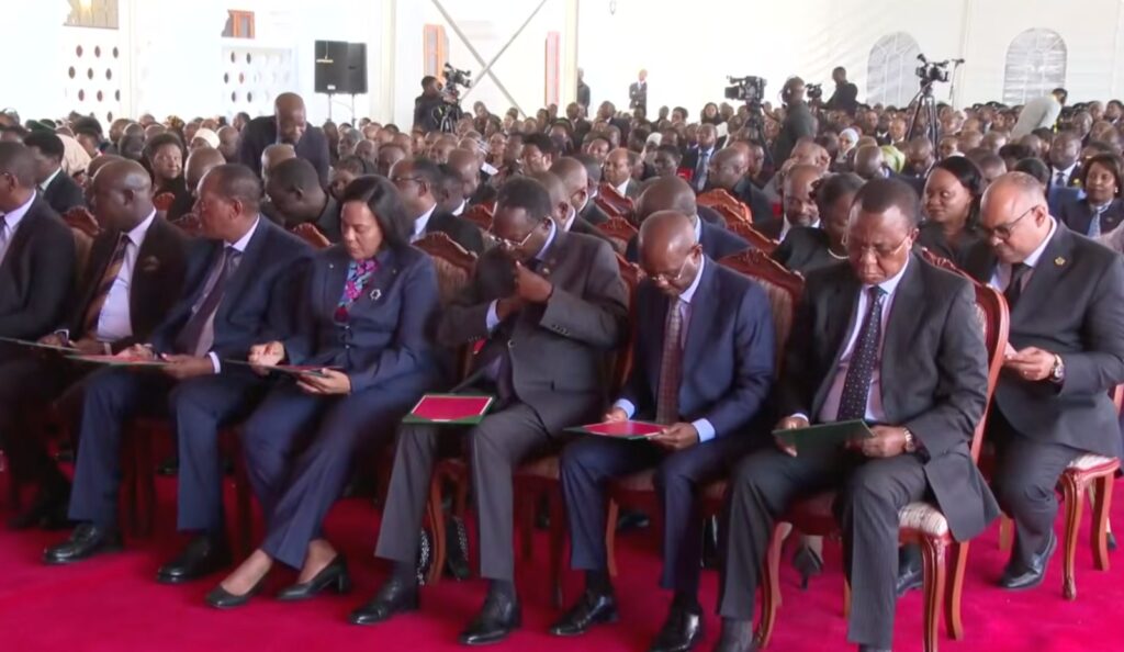 Prime Minister, Dr. Mwigulu Nchemba, closely follows as new ministers took oath