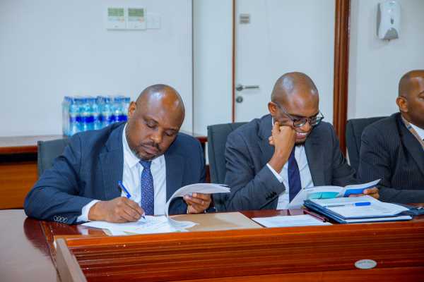 A delegation from the Ministry of Finance during a meeting between Minister of Finance Hon. Ambassador Khamis Mussa Omar and ATIDI Board Chairman Prof. Kelly Kingsly on cooperation with the institution, at the Ministry of Finance offices, Treasury Square, in Dodoma.