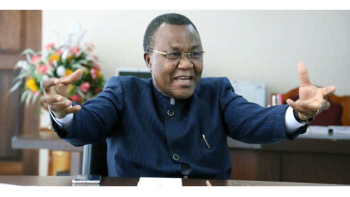 lukuvi stressing a pointg at a press conference.
